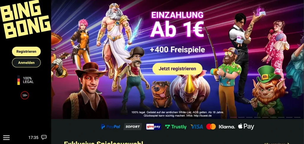 BingBong ist die Schwesterseite von JackpotPiraten und bietet ein ähnlich starkes Erlebnis für alle, die ein 10 Euro Paysafecard Casino suchen. Die Benutzeroberfläche ist modern und für die Nutzung am Smartphone optimiert. Wenn Sie in diesem Online Casino mit Paysafe 10 Euro einzahlen, profitieren Sie von einer klaren Struktur und einem sehr hilfsbereiten Kundensupport.