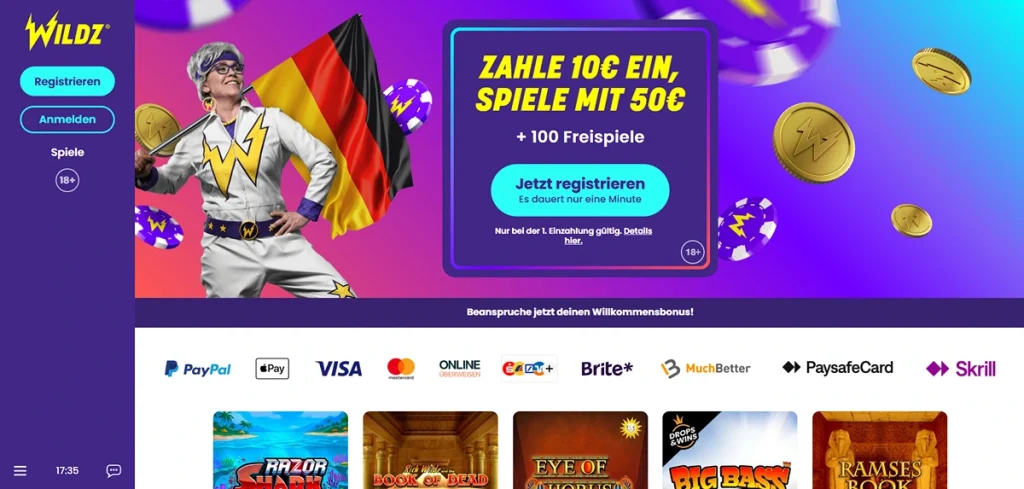 Das Casino nutzt ein hochmodernes System zur Abwicklung von Zahlungen. Wenn Sie hier 10 Euro Paysafecard Guthaben nutzen, wird dies sofort für den Willkommensbonus gewertet. Wildz ist bekannt für seine fairen Bonusbedingungen, was besonders bei kleineren Einzahlungen wichtig ist, damit Sie eine reale Chance auf eine Auszahlung haben.